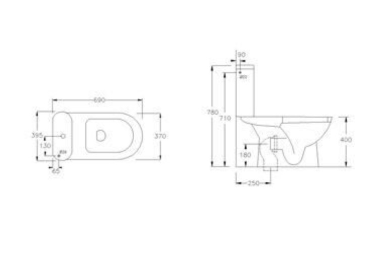 1) Чаша унітазу-компакта підлогового Hatria Marilyn 37х69 см санфарфор білий