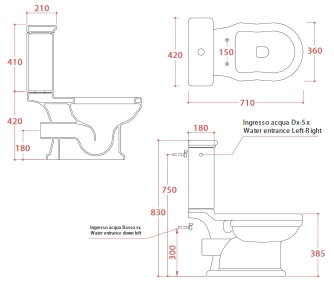 - Додатково купується: системаподвійного змиву арт. HEA010 71/72/73, кнопка хром / бронза / золото