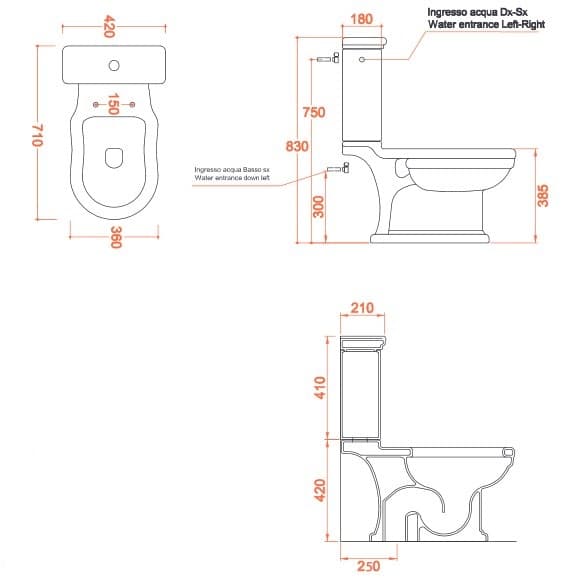 - Додатково купується: керамічний бачок арт. HEC001 01; 00; зливний механізм з системою подвійного змиву арт. HEA010 71/72/73, кнопка хром / бронза / золото