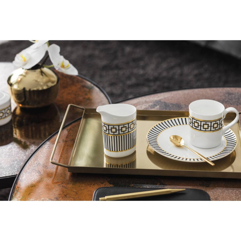 Чистий білий колір з геометричними візерунками в виразних кольорах: чорному і золотом - все це провисокоякісної посуді і подарункової колекції MetroChic. Шляхетний і надзвичайно міцний фарфор Premium Bone Porcelain перетворює будь-який стіл в ікону сучасного стилю з непідвладною часу елегантністю.