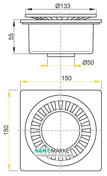 Cливной трап AlcaPlast вертикальний випуск 133х133 APV21
