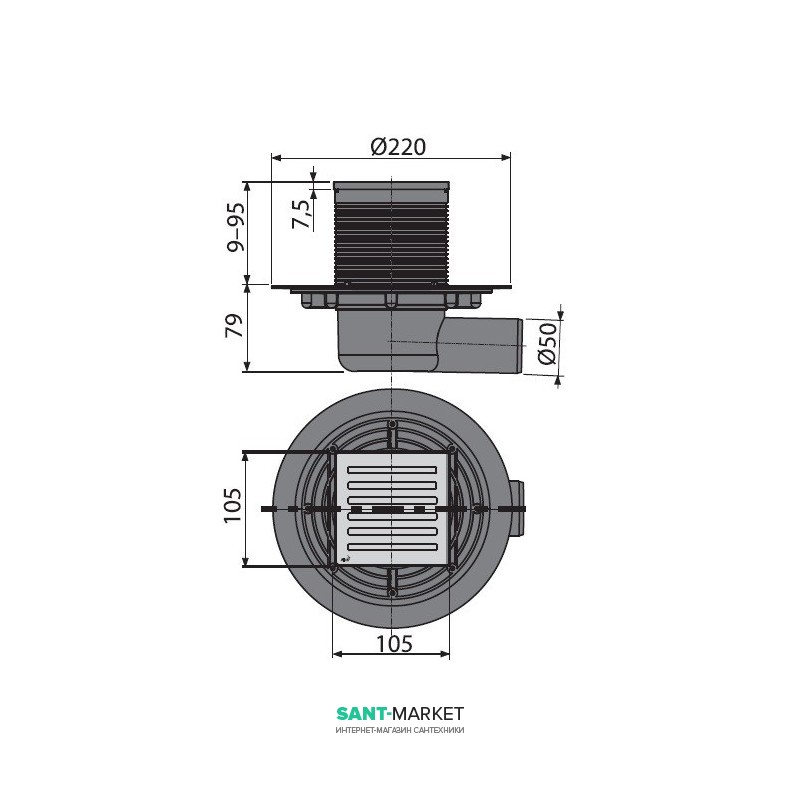 Cливной трап для душу AlcaPlast мокрий затвор регульована висота 105х105 APV103