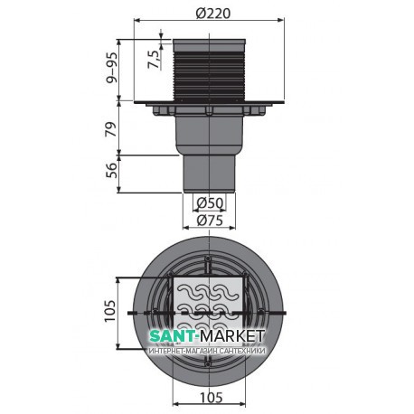 Cливной трап для душу AlcaPlast мокрий затвор вертикальний випуск регульована висота APV202