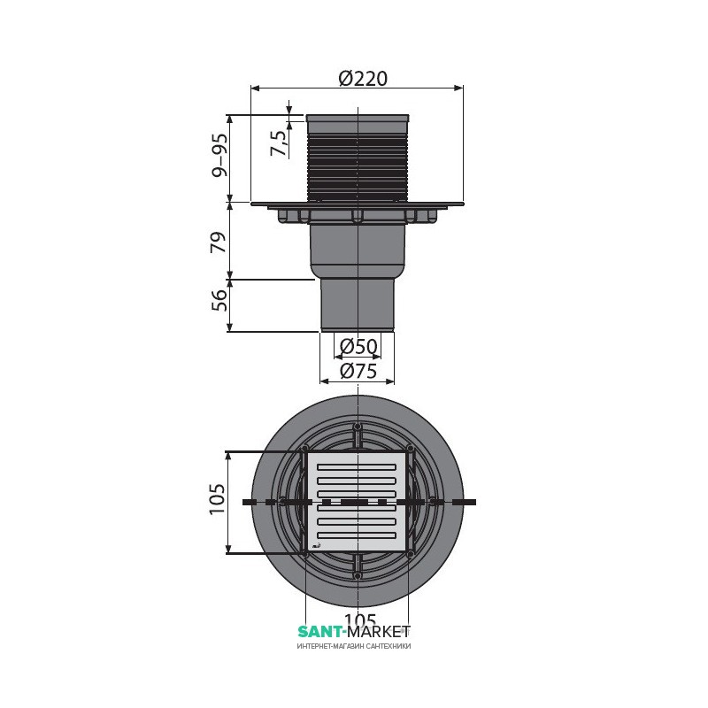 Cливной трап для душу AlcaPlast мокрий затвор прямої випуск регульована висота APV203