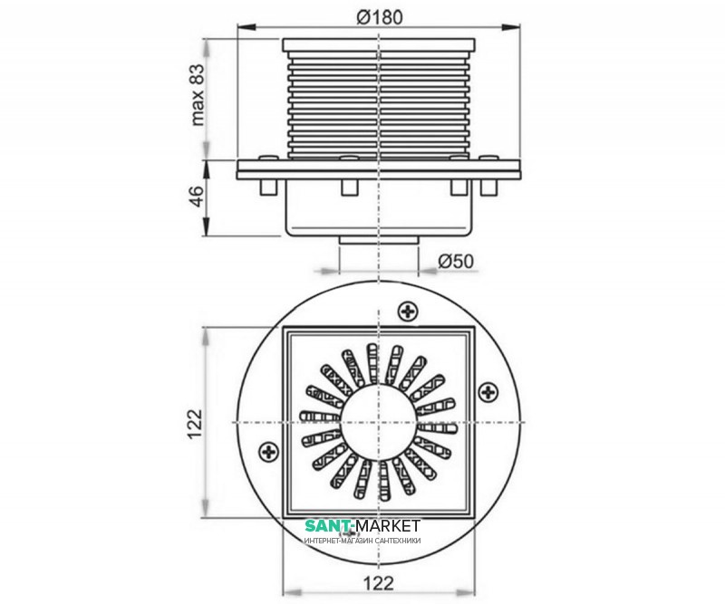 Cливной трап для душу AlcaPlast мокрий затвор прямої випуск 122х122 APV14