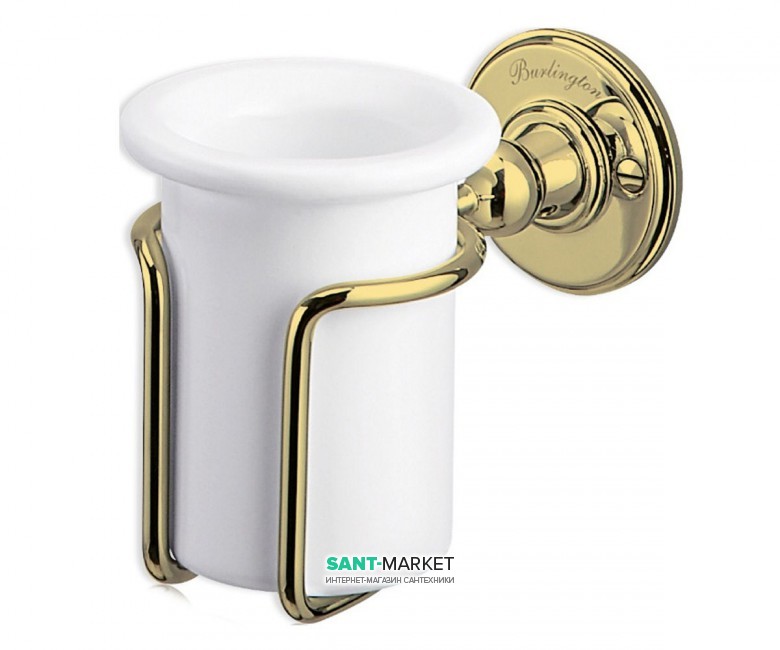 Cтакан для зубних щіток Burlington з власником латунь / кераміка золото / білий A2 GOL