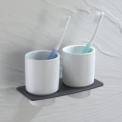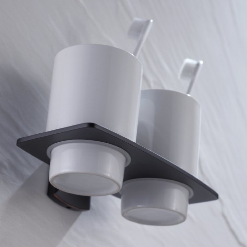 Стакан для зубних щіток подвійний Kraus Fortis з настінним тримачем темний шоколад
