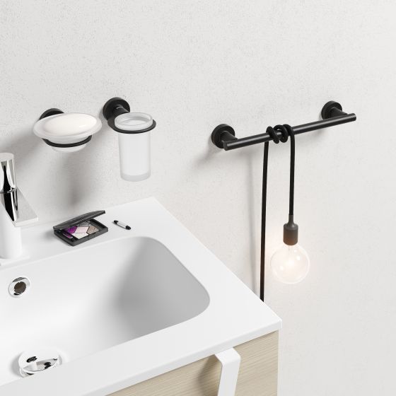 Стакан для зубних щіток з серії Tecno Project Black гармонує з різнимистилями. Особливо виграшні поєднання можна створити в класичних інтер'єрах. Крім того, аксесуар доповнить концепцію стилів лофт і техно. Стакан місткий, збере в одному місці щітки всіх членів сім'ї і буде містити їх в чистоті!