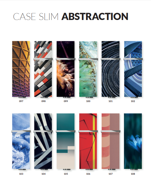 Сушник для рушників, який розуміє Ваші потреби - Case Slim. Максимально прилягає до стіни. Доступний у більш ніж 250 кольорах та спеціальних обробках, у тому числі і з модним бетонним покриттям та дзеркалом. Повна палітра кольорів доступна також для варіанта зі скляною лицьовою поверхнею, що дозволяє розмістити там один із запропонованих нами графічних малюнків або зображення надіслані Замовником. Кожен сушка для рушників має остаточну обробку у вигляді скляного шару і може при цьому виконувати функцію дошки,тому до комплекту включений невеликий подарунок у вигляді спеціального маркера. Доступний за символічну ціну функціональний рейлінг може мати колір корпусу сушки для рушників або бути оформленим в зовсім іншому кольорі, або мати покриття матовий хром. У комплекті: термостатичний клапан 50 мм з елегантною термостатичною головкою SLIM та перехідники на труби з металопластику та міді. Сушка для рушників представлена у водній, водно-електричній та електричній версіях. Теплова потужність: 422-762 Вт.