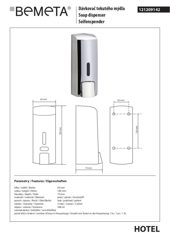 Диспенсер для рідкого мила Bemeta Hotel 300 мл пластик хром глянсовий 121209142