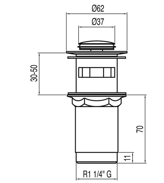 1) Донний клапан для раковини Tres з водозливом Click-Clack хром