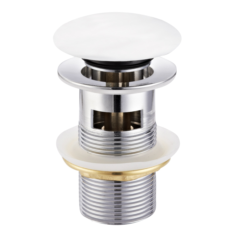 1) Донний клапан для раковини Volle click-clack з переливом латунь білий глянець