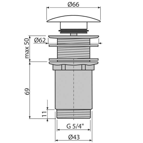Донний клапан для раковини AlcaPlast click-clack 5/4 "суцільнометалевий білий