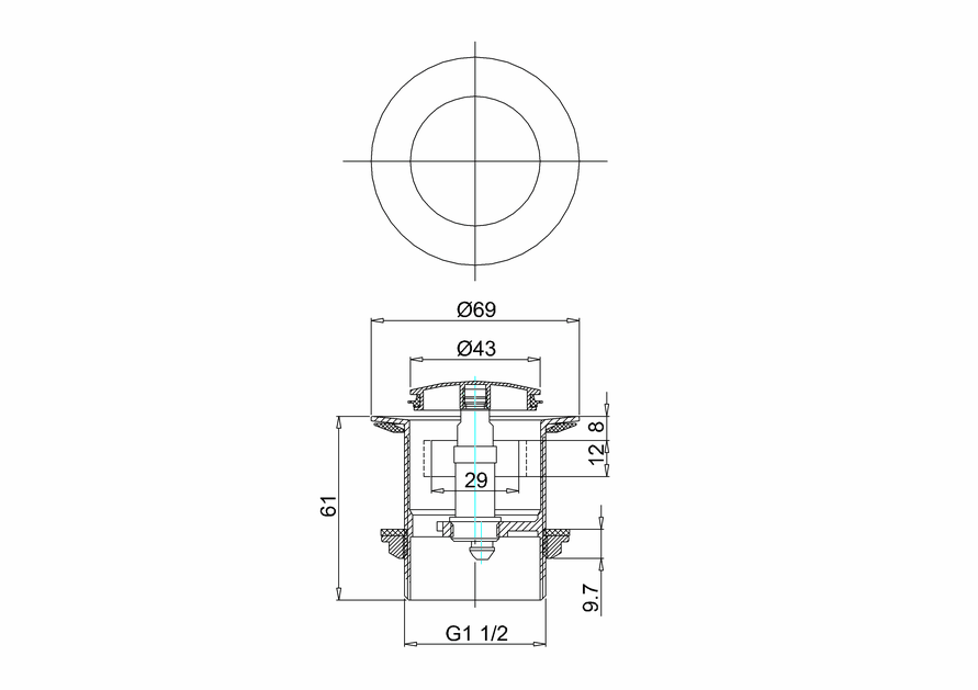 Click Clack донний клапан зхромованою кришкою - для використання з внутрішнім переливом ванни. Натисніть на верхню частину клапана, щоб закрити / відкрити.