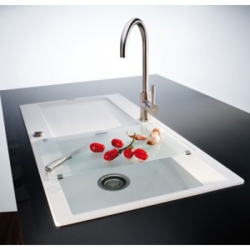 Обробна дошка (112.0047.579) для установки на крило або в чашу мийки. Аксесуар виконаний з високоякісного загартованого скла, що відрізняється особливою міцністю і стійкістю до механічних впливів. Дошка може бути застосована для нарізки овочів і хліба, шинкування зелені, оброблення м'яса.