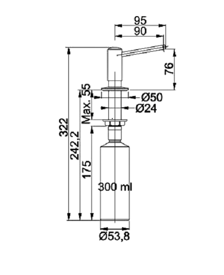 Дозатор для миючого засобу Franke Neptun SDR 300 мл хром 119.0155.993