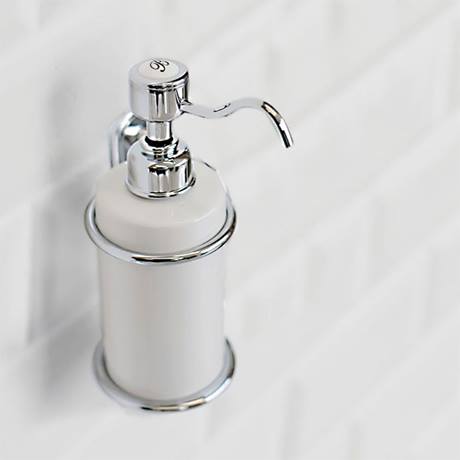 Дозатор для рідкого мила Burlington з настінним тримачем латунь / кераміка хром / білий