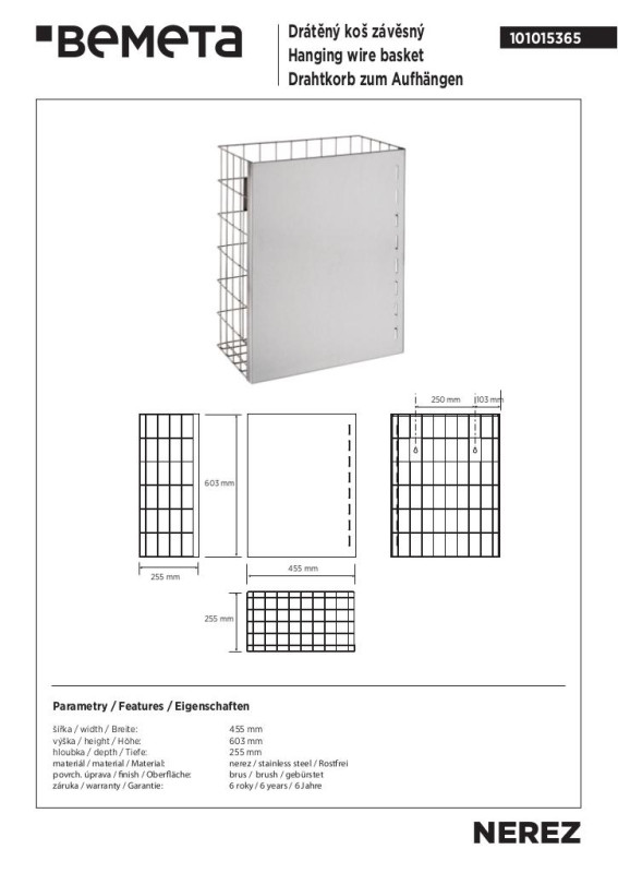 Дротовий кошик для сміття Bemeta Hotel підвісна нержавіюча сталь матова 101015365