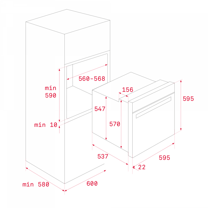 - Розміри: 595 х 595 х 559 мм