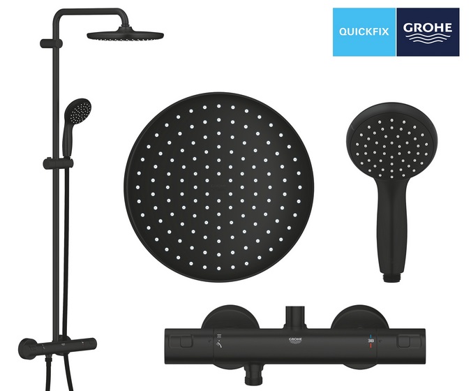 Душева система Grohe Vitalio Start 250 з термостатом чорний матовий