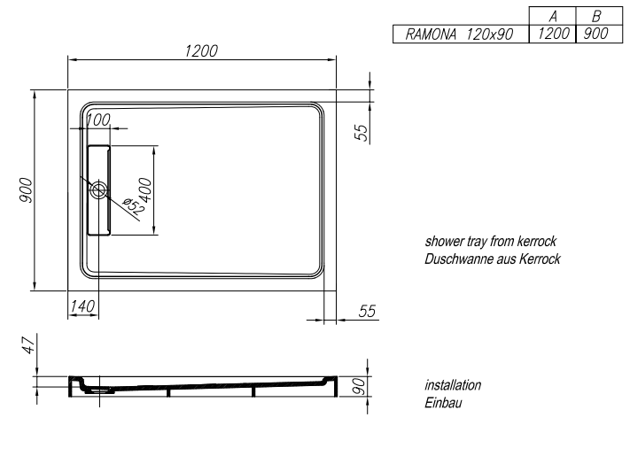 Душевий піддон класу преміум Ramona Tray з матеріалу Kerroсk із простим, чистим силуетом, що відповідає всім вимогам мінімалістичного стилю.