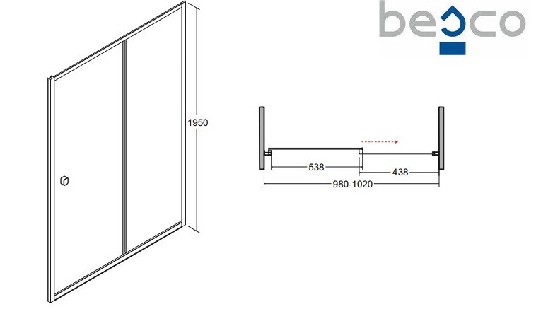 BESCO Duo Slide 100x195 см, ковзаючий глянсовий хром/прозорий скло