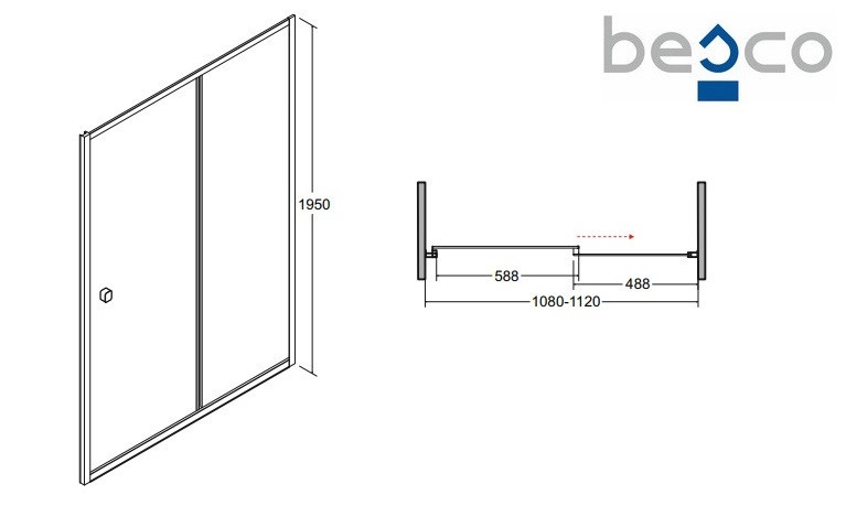 BESCO Duo Slide 110x195 см, ковзаючий глянсовий хром/прозорий скло