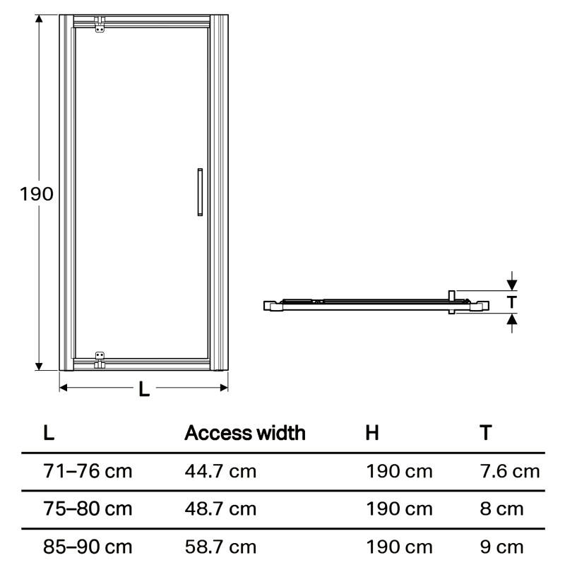 Душеві двері Geberit One поворотні 71-76 см прозоре скло/сріблястий профіль