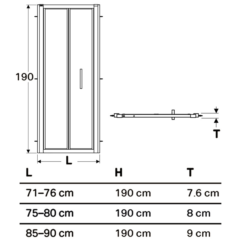 Душові двері Geberit Geo складні розсувні 71-76 см прозоре скло/сріблястий профіль 560.106.00.2
