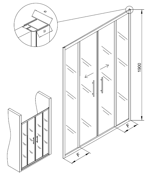 Профіль для компенсації нерівностей. Для випадків, коли немає стандартних розмірів для установки душових кабін, ми розробили додаткові компенсаційні профілі для підгонки стандартнихвиробів до бажаних розмірів.