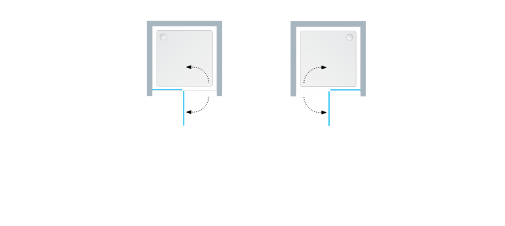 Хромовані петлі з функцією відкриття всередину або назовні +/- 90.Підходить для невеликих ванних кімнат, де повне відкривання всередину дає додатковий простір (в разі, якщо душова кабіна встановлена на низький піддон).