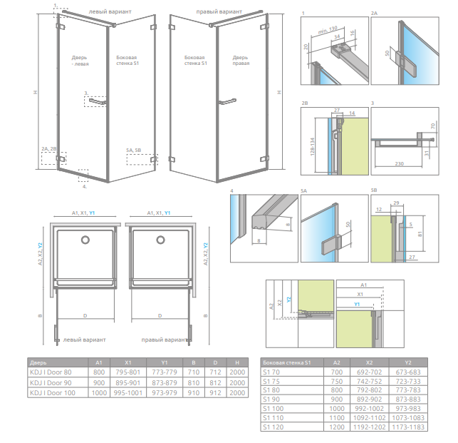 для створення душової кабіни потрібна комбінація з боковою стінкою S1.