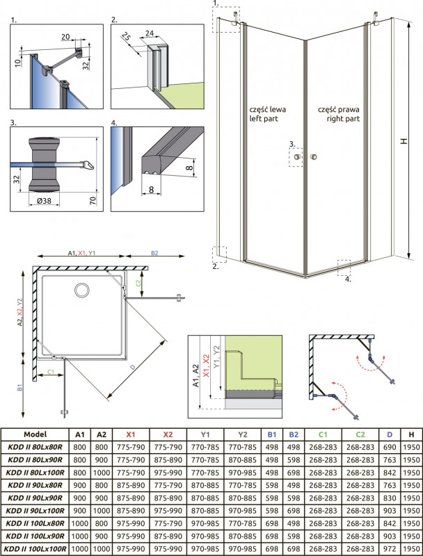 для створення душової кабіни необхідна комбінація з правими дверима (13799460-01L, 13799461-01L, 13799462-01L)