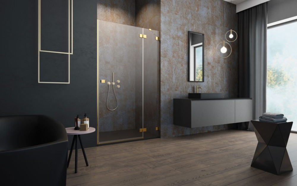 1) Душові двері Radaway Essenza Pro Gold DWJ 120 правосторонні золото / прозоре скло