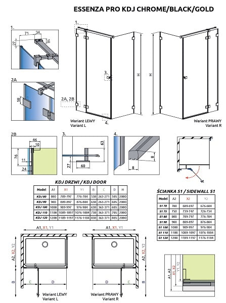 в комбінації з бічною стінкою S1 виходить душова кабіна Essenza Pro KDJ