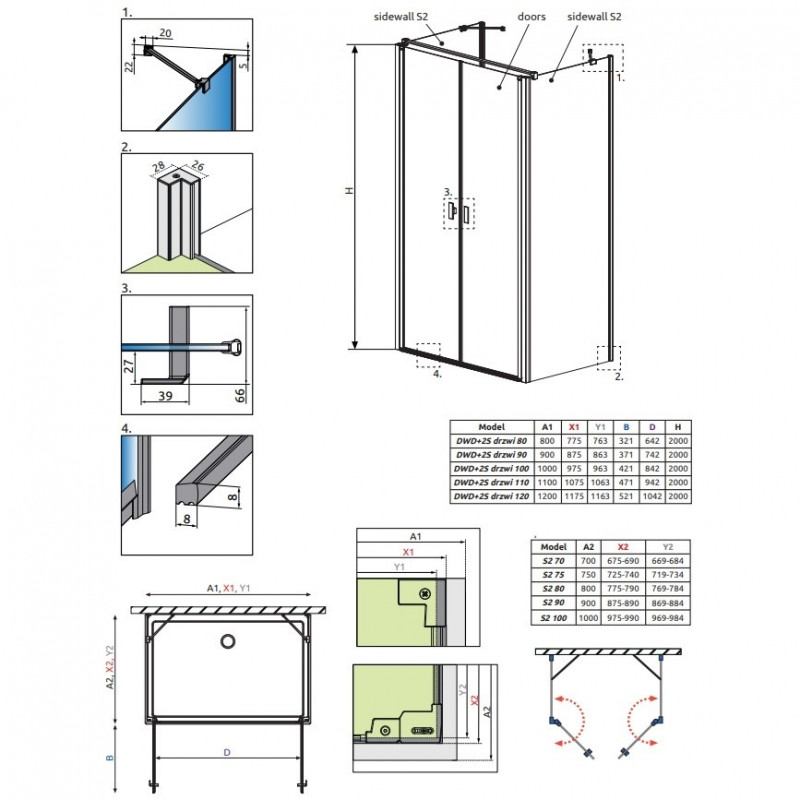 У замовленні треба вказати 3 номери артикулів: двері та 2 бічні стінки S2.
