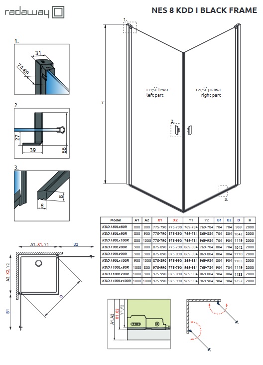 1) Душові двері Radaway Nes 8 Black KDD I Frame 90 правосторонні чорний / скло Frame