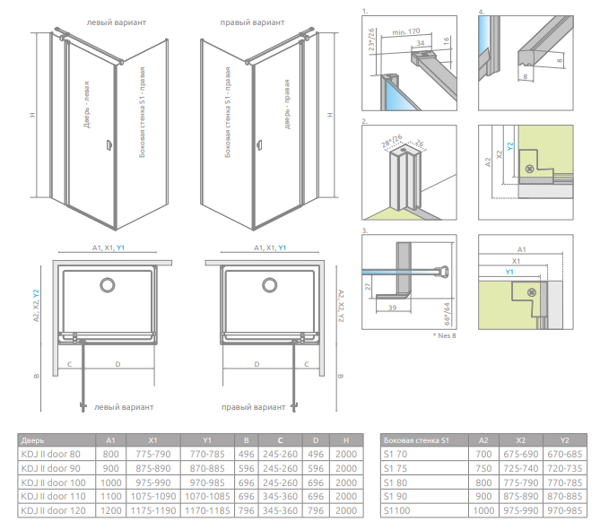У замовленні треба вказати 2 номери артикулів: двері та бічні стінки S1.
