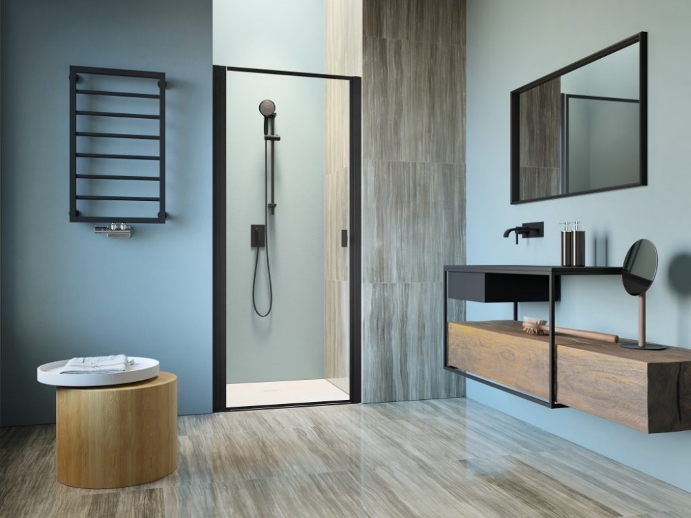 1) Душові двері Radaway Nes Black DWJ I Frame 70 лівобічні чорний / скло Frame