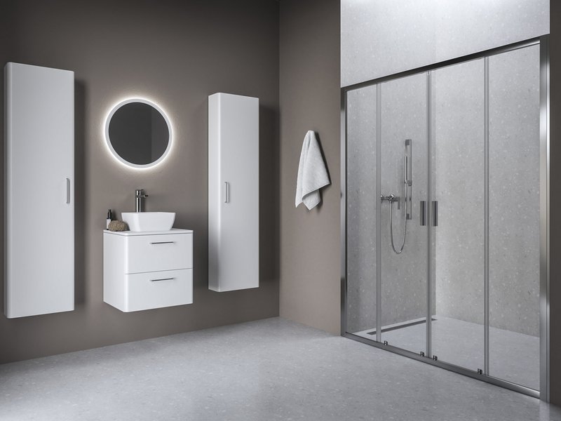 Куточок ванної кімнати встановлений у плитці, вистеленій плиткою (ідеально підходить для вистеленої нішіабо для комбінації з нерухомою стінкою BLPS) на піддонах Ravak Gigant Pro, Gigant Pro Flat, Gigant Pro Chrome, Gigant Pro 10 ° або безпосередньо до підлоги з вбудованим душем або смугою. Поєднання з двома нерухомими стінами типу BLPS дозволяє створити "P" - образний душ. Для цього продукту використання профілю коригування BLNPS не призначено.
