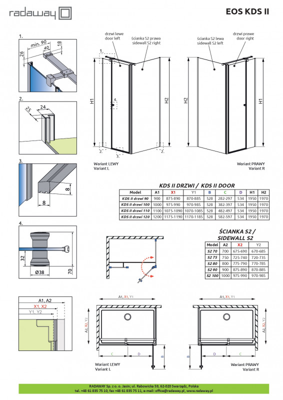 1) Душова бічна стінка Radaway Eos KDS II S2 80 см хром/прозоре скло