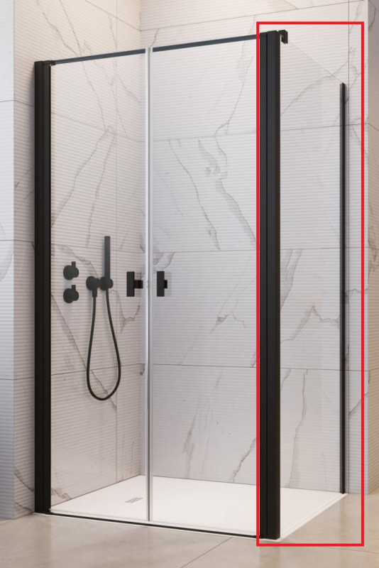 1) Душова бічна стінка Radaway Nes 8 Black S2 90 см чорна/прозора