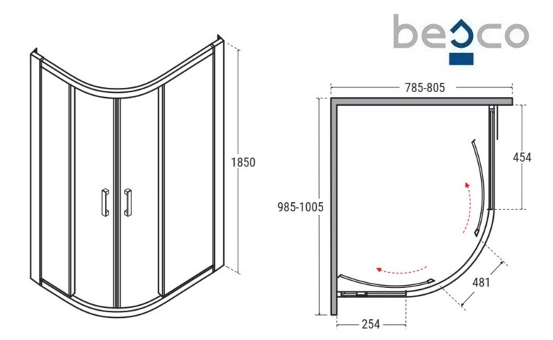 Душова кабіна Besco Modern 100х80 см профіль хром/скло прозоре MA-100-80-C