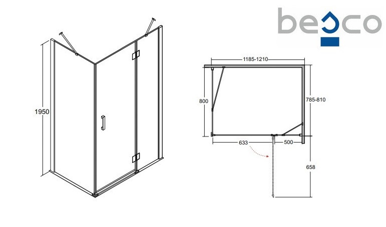 Душова кабіна Besco Viva 120х80 см права профіль хром/скло прозоре VPP-128-195C