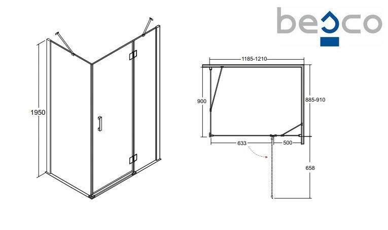 Душова кабіна Besco Viva 120х90 см права профіль хром/скло прозоре VPP-129-195C