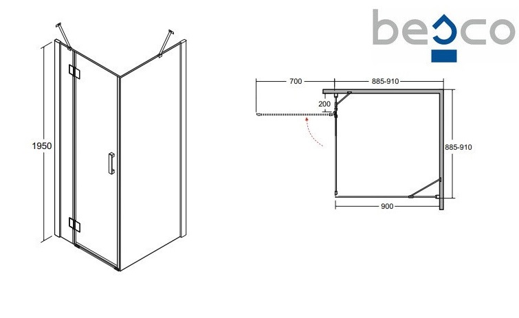 Душова кабіна Besco Viva 90х90 см ліва профіль хром/скло прозоре VKL-90-195-C