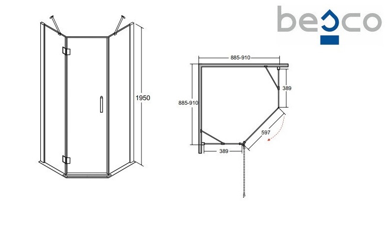 Душова кабіна Besco Viva 90х90 см ліва профіль хром/скло прозоре V5L-90-195-C