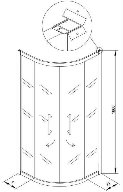 Знімне дверне полотно. Бруд накопичується в місцях, які важкодоступні для чищення. За допомогою нижньої знімною направляючої душову кабіну знімемо і бактерії, що утворюються під час прийняття душу, видалимо.