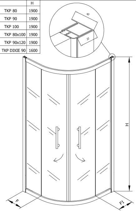 Знімне дверне полотно. Бруд накопичується в місцях, які важкодоступні для чищення. За допомогою нижньої знімною направляючої душову кабіну знімемо і бактерії, що утворюються під час прийняття душу, видалимо.