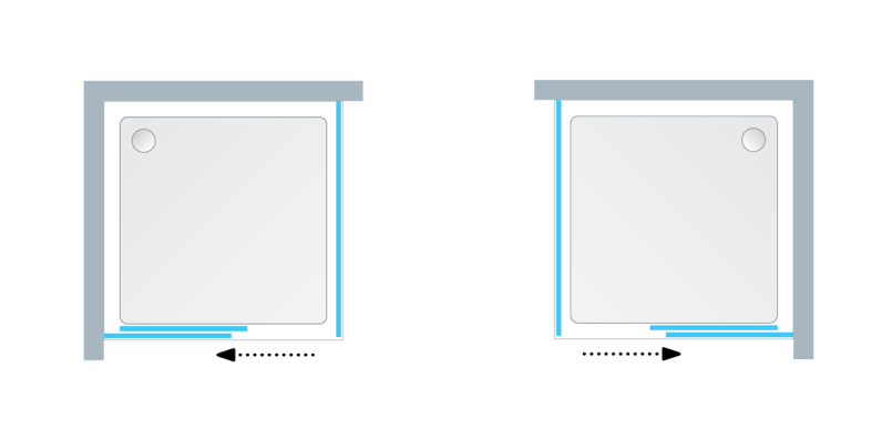 Душова кабіна - двері і стінка, одностворчатое відкривання вправо або вліво.